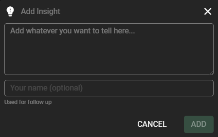 To add an Insight comment, start by clicking the symbol to open up the Add Insight textbox.