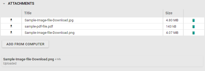 Attachments can be added to the plan by dragging and dropping it into the Drag and Drop area or by clicking “Add from computer” and browse through files to select the attachment.