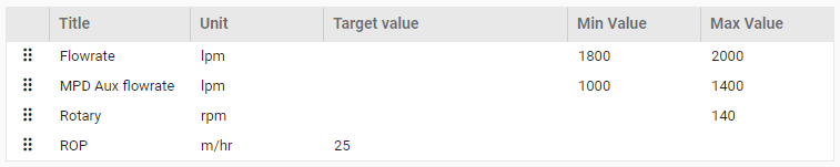 The purpose of separating the Operational Parameters is to allow for an easy overview of operational parameters in RigFlow.
