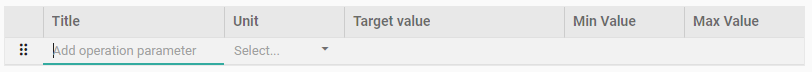 An operational parameter is defined by Title, Unit, Target value, Min value, Max value.